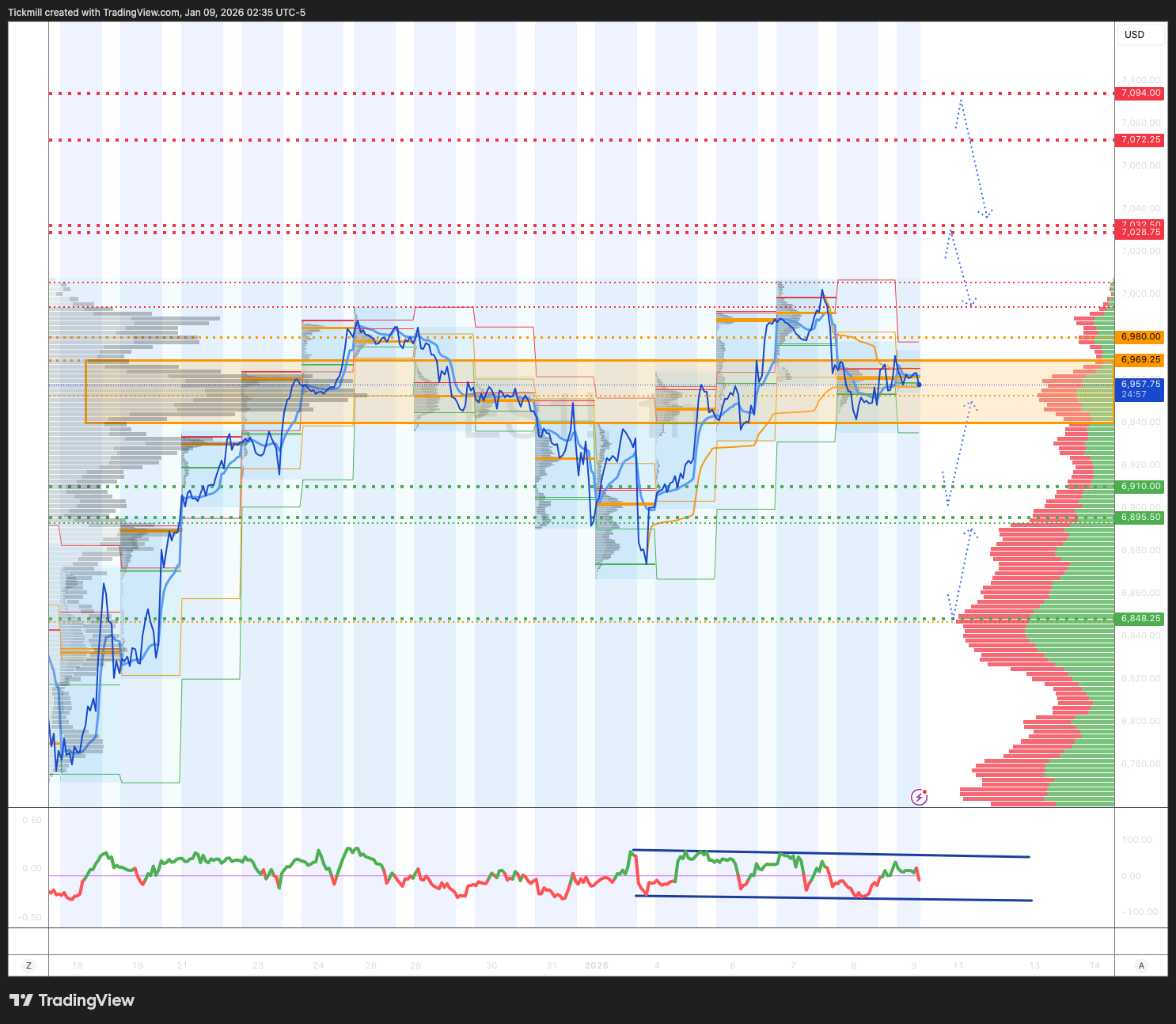 PRIMARY PLAY - LONG ON REJECT/RECLAIM DAILY RANGE SUP TARGET 6950